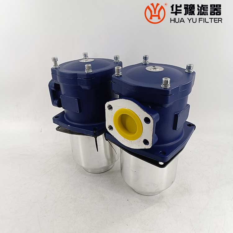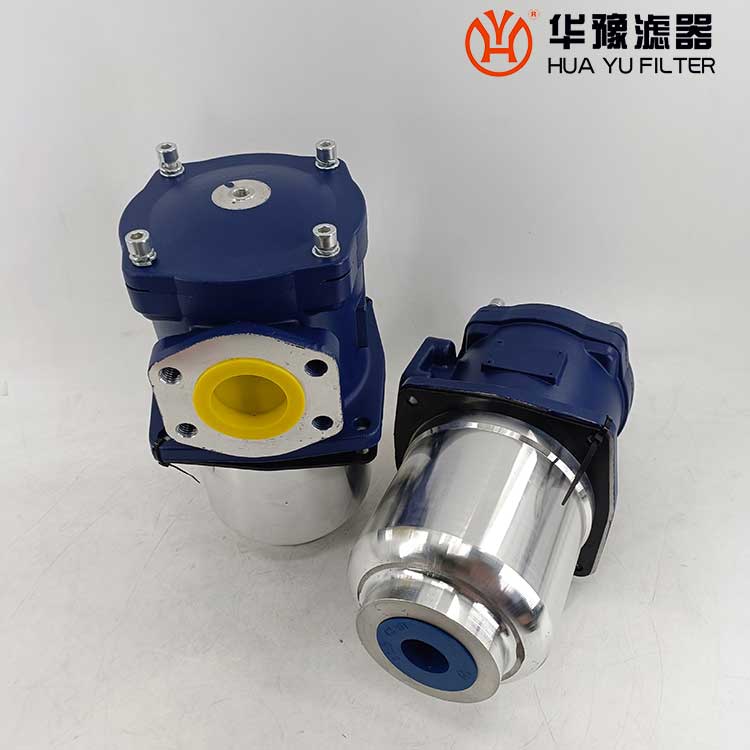 該過濾器的濾芯采用化纖過濾材質,具有過濾精度高,通油能力大,初始壓力損失小,納污量大等優(yōu)點,并裝有壓差發(fā)訊器及旁通閥。當濾芯堵塞到進出油口壓差為0.35MPa時,便發(fā)出開關信號,此時應更換濾芯。如果不能馬上停機或無人來更換濾芯,裝在濾芯上部的旁通閥會自動開啟,以保護系統(tǒng)。
