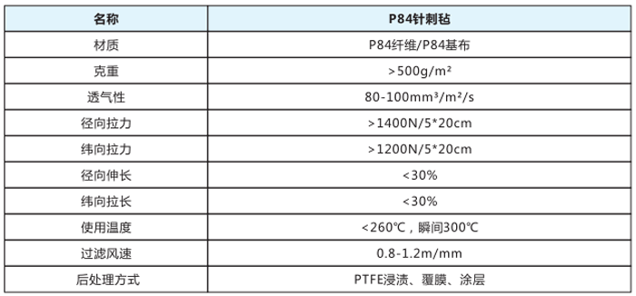 P84針剌氈采用奧地利LENZING公司所生產(chǎn)的P84纖維(即聚酰亞胺)經(jīng)三維針刺而成,具有很好的耐高溫性能,耐溫達(dá)280℃,且P84纖維截面呈不規(guī)則葉狀,可以大大提高過(guò)濾效果,纖維本身還有一定的抗水解、抗氧化性,該產(chǎn)品耐溫性好、過(guò)濾效果好、廣泛地適用于混凝土攪拌、水泥、垃圾焚燒、燃煤鍋爐等復(fù)雜工況條件下使用。